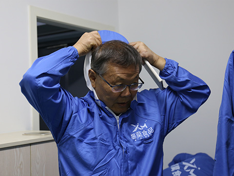 圖為:何清華先生為參觀細莫食品工廠而做準備。