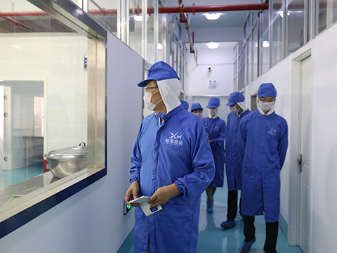 圖為:何清華先生參觀細莫食品無菌生產(chǎn)車間。