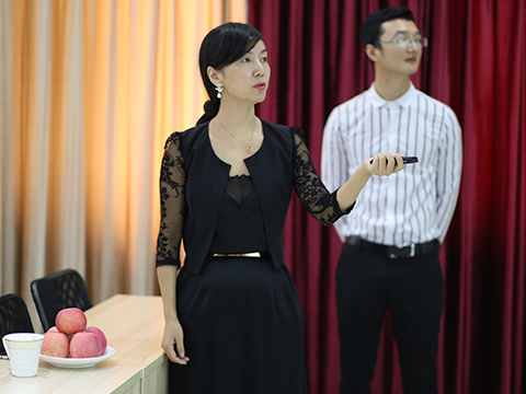 圖為:細莫董事長莫靜波女士向其一行介紹公司發(fā)展現(xiàn)狀。