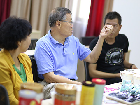 圖為:何清華先生根據(jù)細莫的發(fā)展實情,提出自己的寶貴意見。